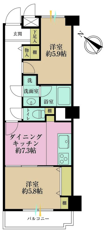 バルコニー / ワイドバルコニー / 南面バルコニー / バス・トイレ別 / 浴室乾燥機 / 温水洗浄便座 / シャワー付洗面化粧台 / 独立洗面台 / 脱衣所あり / 洗濯機置き場(室内) / 洗濯機置き場(有) / シューズボックス / 全居室収納
