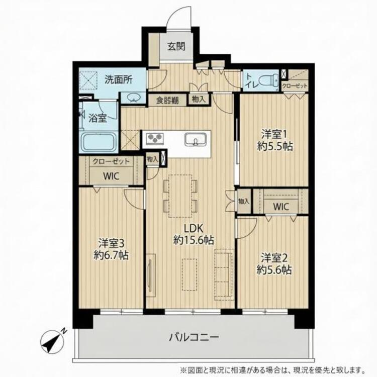 バルコニー / ワイドバルコニー / バス・トイレ別 / 追焚機能 / 浴室乾燥機 / 温水洗浄便座 / シャワー付洗面化粧台 / 独立洗面台 / 洗濯機置き場(有) / ウォークインクローゼット / クローゼット / 全居室収納