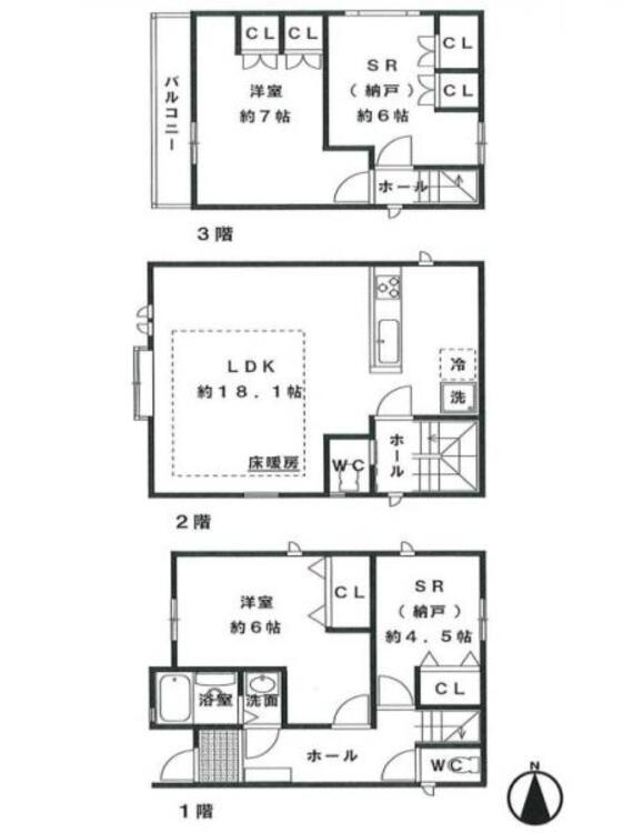 床暖房 / バルコニー / バス・トイレ別 / 温水洗浄便座 / 独立洗面台 / 全居室収納