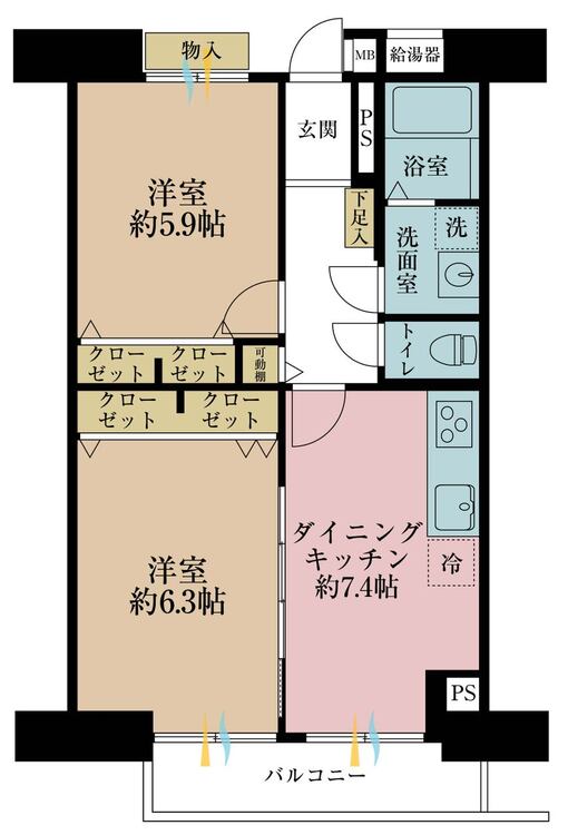 2DK / 53.4㎡(専有面積)
