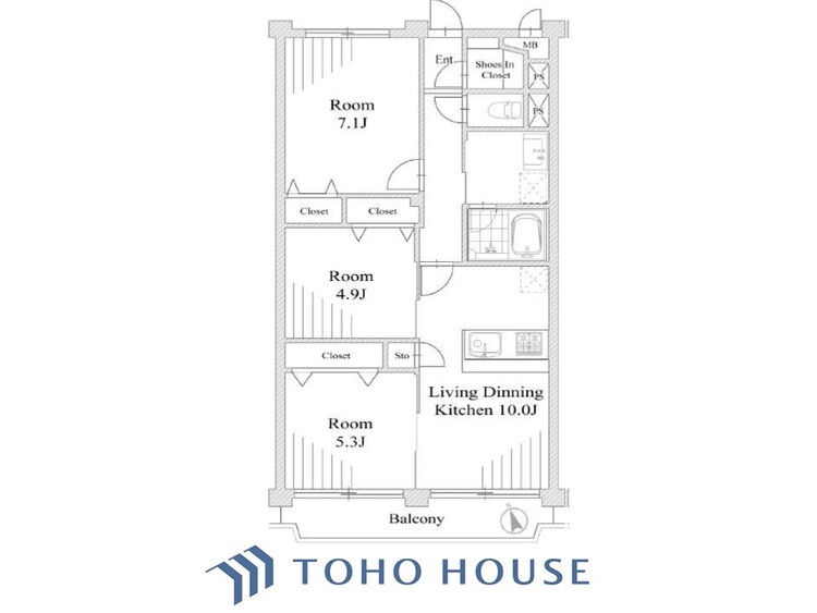 3LDK / 64.8㎡(専有面積)