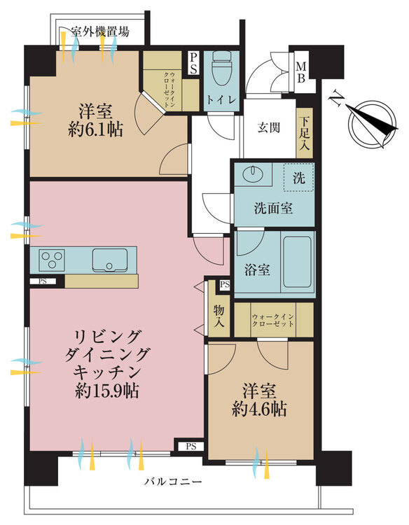 2LDK / 61.65㎡(専有面積)