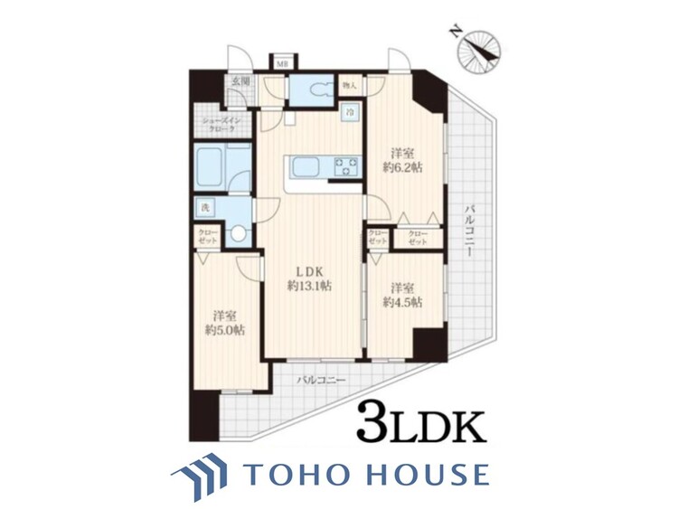 3LDK / 60.97㎡(専有面積)