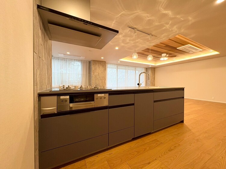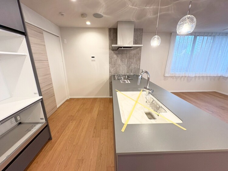 対面式キッチン / 食器洗い乾燥機 / 浄水器・活水器 / パントリー(食器・食品の収納庫) / コンロ三口 / システムキッチン