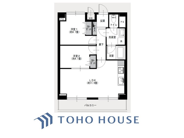 2LDK / 49.6㎡(専有面積)