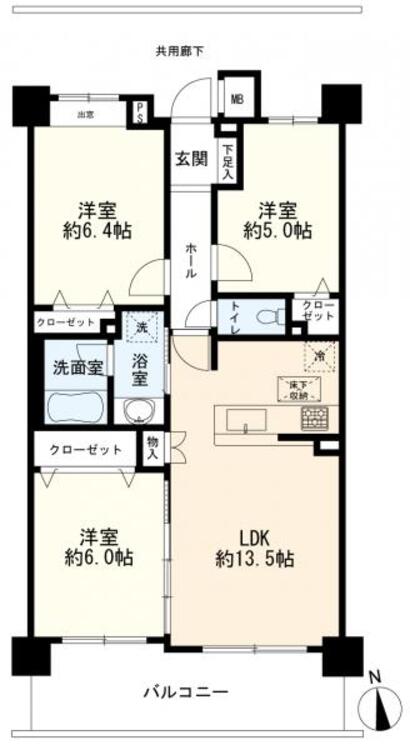 3LDK / 66.62㎡(専有面積)