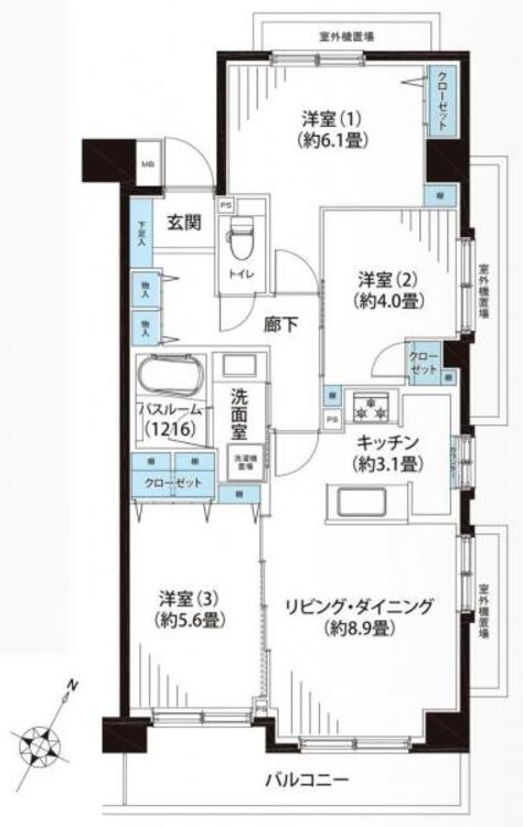 3LDK / 64.0㎡(専有面積)