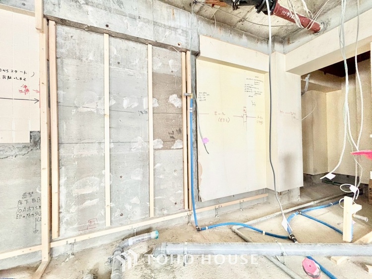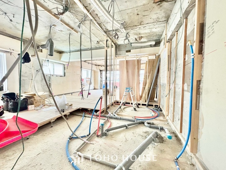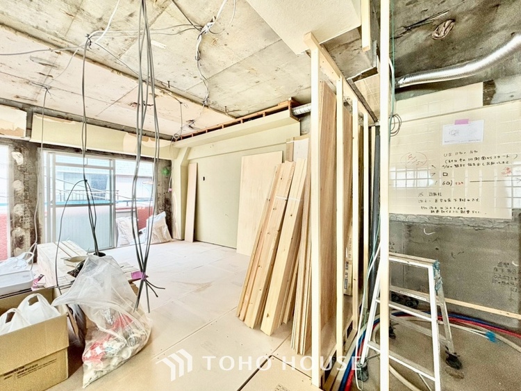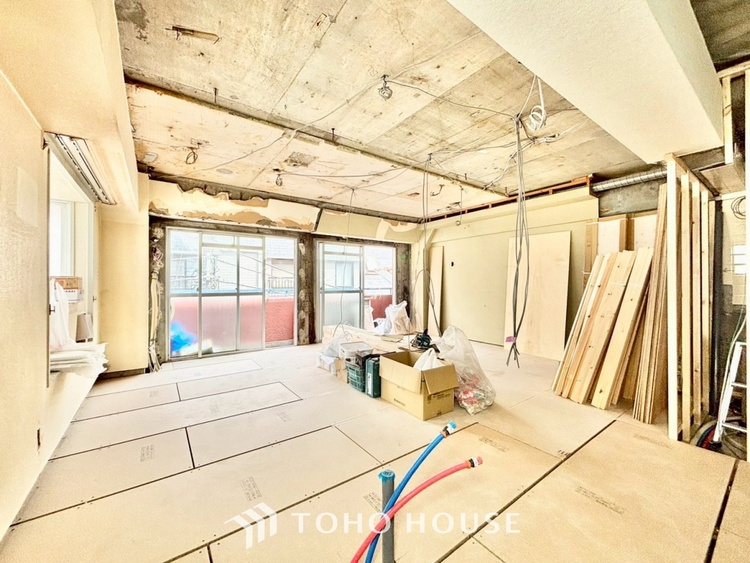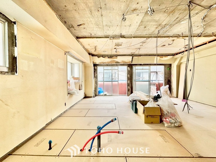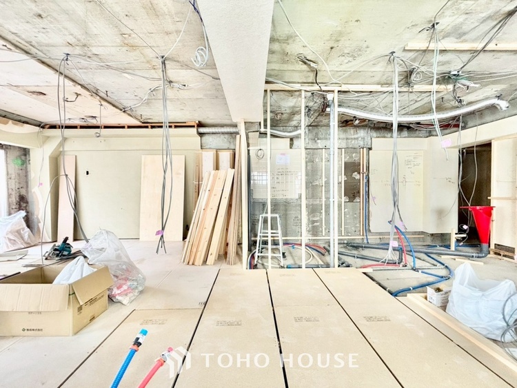 外観は落ち着いた趣のあるマンションですが、一歩室内に入れば、そこには最新のトレンドを取り入れた上質な空間が広がります。今回のリノベーションは「スケルトン工事」。一度構造体だけの状態に戻してから、配管や配線、設備をすべて新調します。新築マンションのような安心感と、中古マンションならではのアクセスの良さ、その「いいとこ取り」ができるのがこの物件の魅力です。