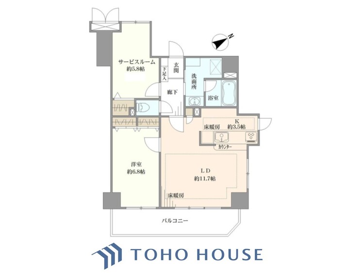 エアコンつき / 床暖房 / バルコニー / バス・トイレ別 / オートバス / 追焚機能 / 浴室乾燥機 / 温水洗浄便座 / 独立洗面台 / 脱衣所あり / 洗濯機置き場(室内) / 洗濯機置き場(有) / クローゼット / シューズボックス / 全居室収納