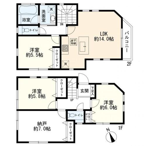 バルコニー / バス・トイレ別 / 温水洗浄便座 / 独立洗面台 / 追焚機能 / 浴室乾燥機 / 床下収納 / 全居室収納