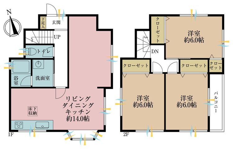バルコニー / バス・トイレ別 / 温水洗浄便座 / シャワー付洗面化粧台 / 追焚機能 / クローゼット / シューズボックス / 床下収納 / 全居室収納