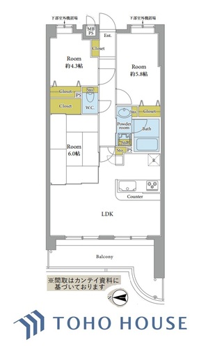 3LDK / 64.27㎡(専有面積)
