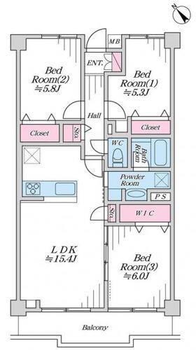 3LDK / 74.15㎡(専有面積)
