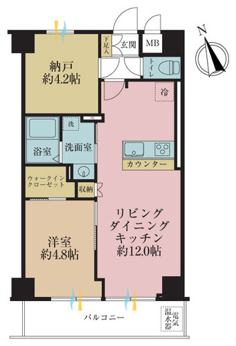 バルコニー / ワイドバルコニー / 南面バルコニー / バス・トイレ別 / 温水洗浄便座 / 洗濯機置き場(室内) / 洗濯機置き場(有) / 追焚機能 / 浴室乾燥機 / ウォークインクローゼット / クローゼット / シューズボックス