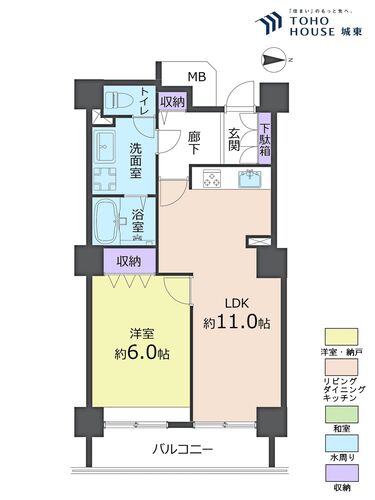 | バルコニー | 有 6.0㎡ | 主要採光面 | 東 |
