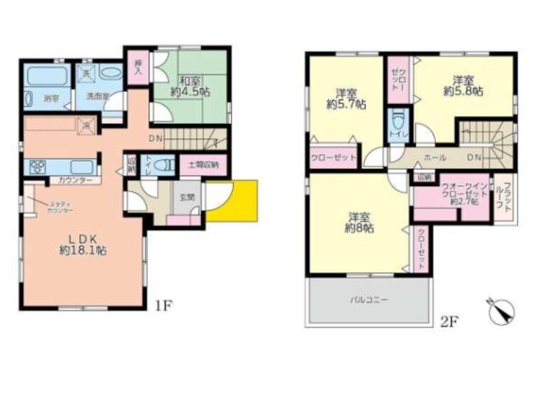 バルコニー / ワイドバルコニー / バス・トイレ別 / 温水洗浄便座 / シャワー付洗面化粧台 / 独立洗面台 / 追焚機能 / ウォークインクローゼット / シューズインクローゼット / 全居室収納