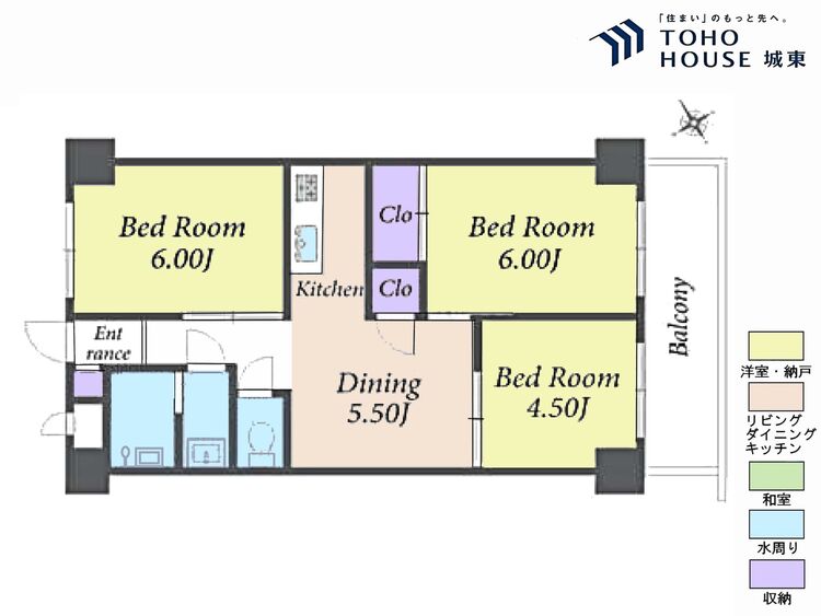 バルコニー / バス・トイレ別 / 独立洗面台 / 洗濯機置き場(室内) / 洗濯機置き場(有) / クローゼット