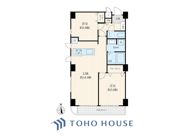2LDK / 58.57㎡(専有面積)